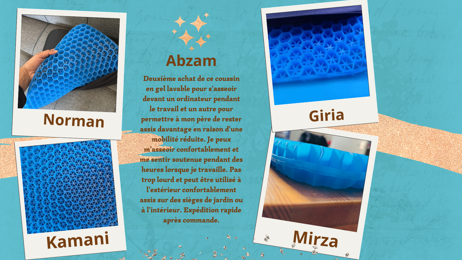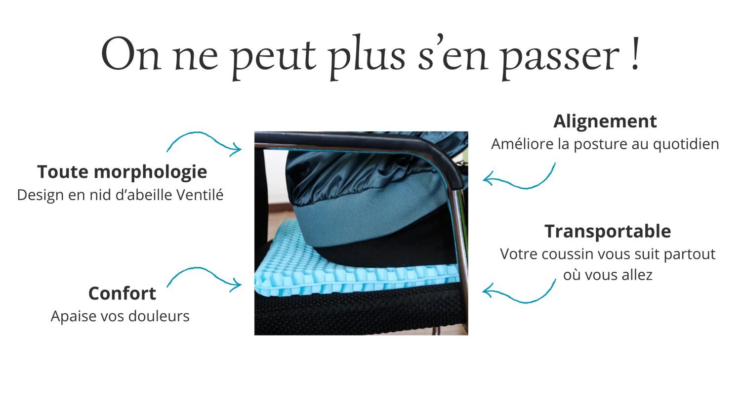 Si tu souffres de douleurs lombaires, de coccyx, ou de tension liée à la posture assise, un coussin en gel est conçu spécifiquement pour répartir la pression et soutenir les zones sensibles.